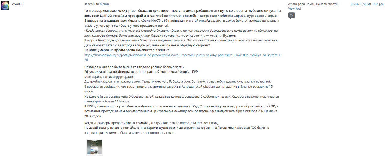 Я тебе больше скажу, когда-то он верил хуйлячьим сказкам, да ещё доказывал к примеру что самолёт с украинскими пленными сбила Украина (я полностью распылил этот фейк), доказывал что Орешника не существует, много чего. Теперь вот Иран поддерживает покруче многих троллей.