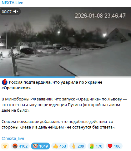Сообщают в эти минуты, что по Львову прилетел “Орешник”.