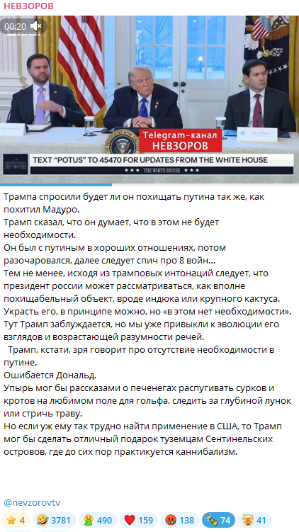 В переводе на понятный язык высер этой ермаковской подстилки звучит так: соглашайтесь на подписание мирного договора на невыгодных условиях, гои, иначе будет хуже! Всё логично – Трамп давит на чекистов-проглобалистов и их союзников в Иране, а Банковая давит на украинское население, в том числе с помощью блэкаутов и заявлений в духе “всё пропало”.