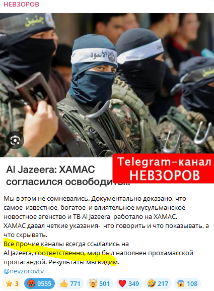Аль Джазира работает на ХАМАС = Дональд Трамп работает на Такера Карлсона. Разумеется, и то, и другое – полный бред! Аль Джазира – детище Британии, точнее, той части британской элиты, которая стоит за Китаем Си. Так что у ХАМАСа и Си – одни и те же хозяева.