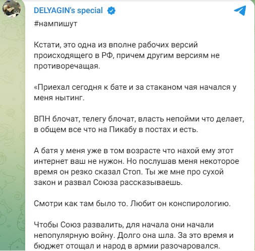 Суть в том, что нынешние блокировки VPN, закручивание гаек и долгая “эСВэО” — это точная копия сценария по развалу Советского Союза.