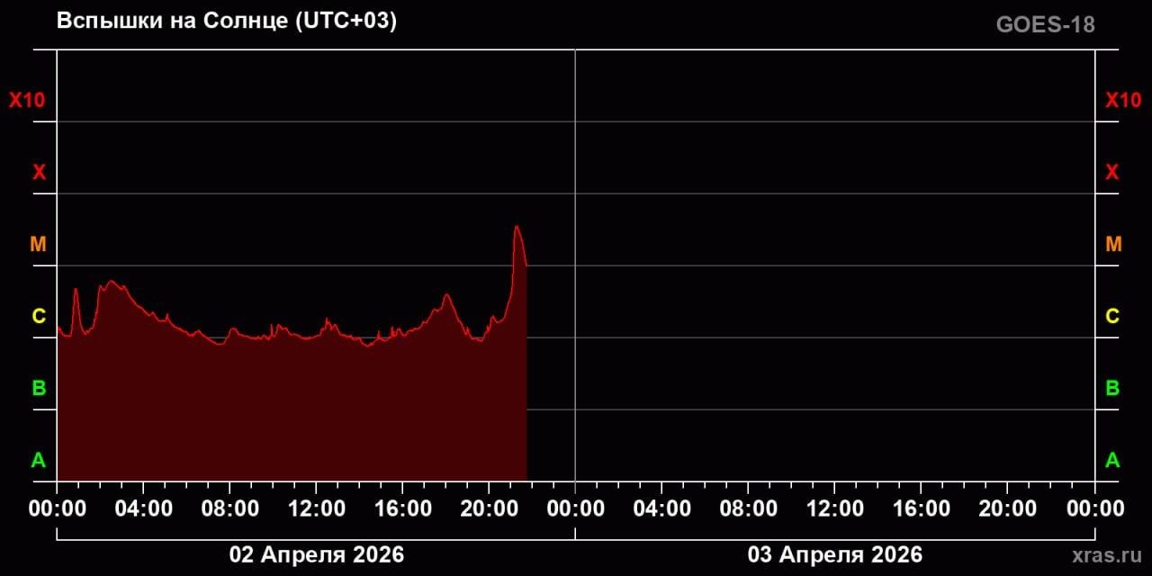 На Солнце произошла вспышка предпоследнего класса мощности.