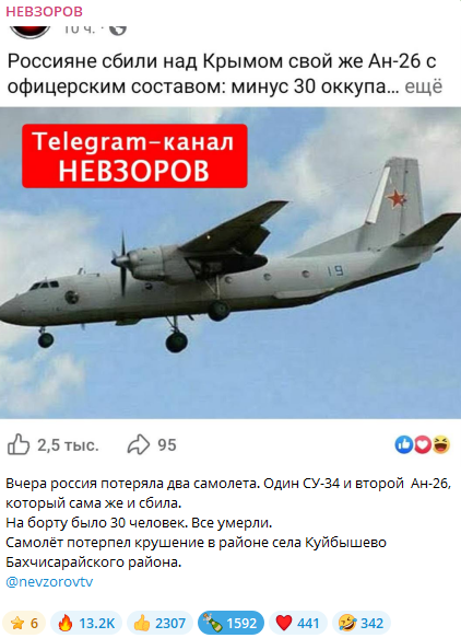 «Дружественный огонь» (Версия военных блогеров): Ряд мониторинговых каналов и журналистов (например, Иван Яковина) распространили информацию о том, что самолёт мог быть по ошибке сбит российской системой ПВО, работавшей в ту ночь по неопознанным целям. Внешнее воздействие: Несмотря на отсутствие официальных заявлений о работе ВСУ конкретно по этому борту, инцидент произошёл на фоне регулярных атак беспилотников на объекты в Крыму, что могло спровоцировать хаос в управлении ПВО. https://www.unian.net/world/an-26-ekspert-obratil-vnimanie-na-strannye-obstoyatelstva-krusheniya-rossiyskogo-samoleta-v-krymu-13335855.html Подозрительная спешка: мо рф мгновенно заявило о «технической неисправности». Такая поспешность обычно указывает на попытку скрыть неудобную правду. Странный маршрут: Самолёт официально “врезался в гору” (высотой до 500 м) в 25–30 км от ближайших аэродромов. На такой дистанции… Read more »