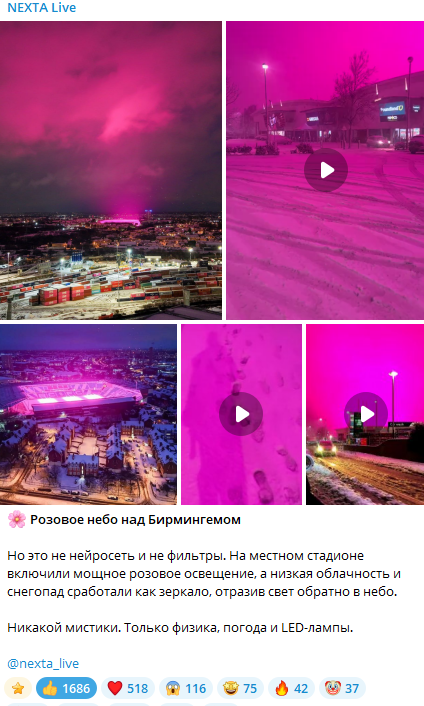 Розовое небо накрыло английский Бирмингем