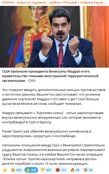 Но что может быть серьезного, если выше мы в общих чертах обрисовали ход операции: базы разбомбили, денежки арестовали  – и всё, там начнутся уже разборки между бывшими соратниками и конкуренция за голову товарища Мадуро.