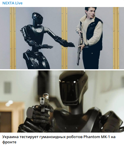 • Чёрная сталь: В феврале компания Foundation (США) перебросила на фронт двух гуманоидов в корпусах из воронёной стали с зеркальными визорами. Это не просто дроны, это «заменители солдат».
