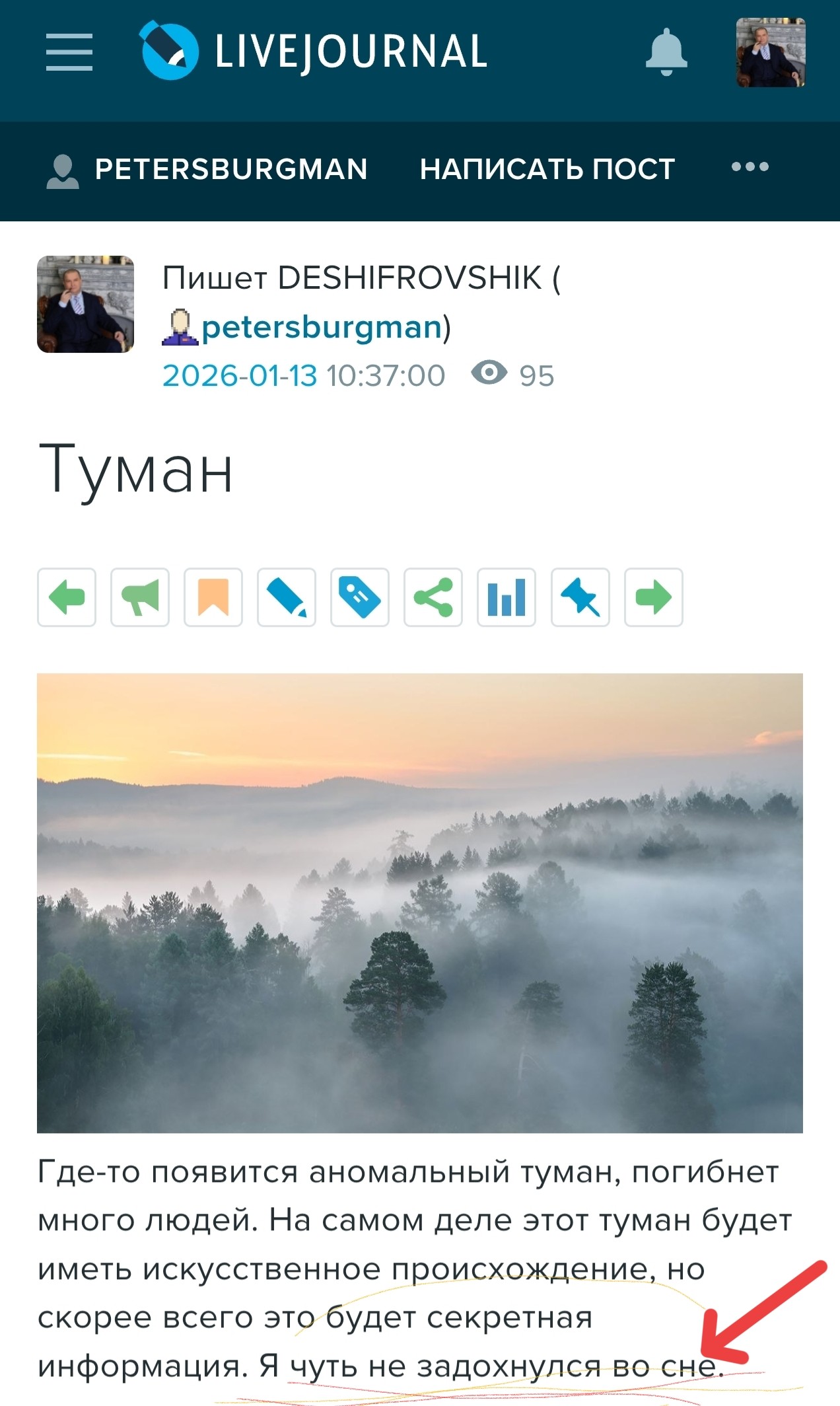 Туман накрыл много людей. Я сны вижу глазами участников.