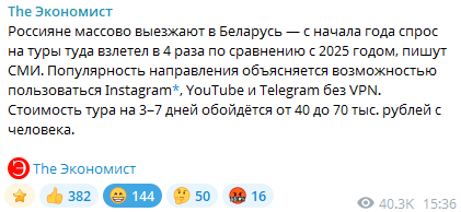 Когда ИнстаГрам приравнен к ИГ (ИГИЛу), теперь ИГ и ТГ в стране нет, террористы/экстремалы езжайте за ними в Беларусь, пока в стране 198404 не открыли притоны специально для этой запрещёнки.
