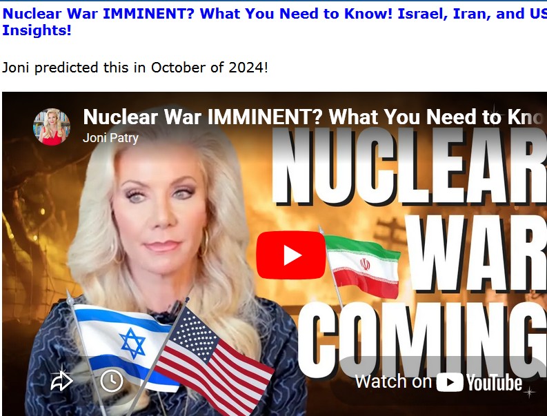 В США сейчас в самом топе и на самом переднем крае Джоани Патри, которая как и в свое время пан Кшиштоф удачно предсказала во*ну в заливе – правильно назвала год и месяц. И сейчас она снова стучит в рельсу.