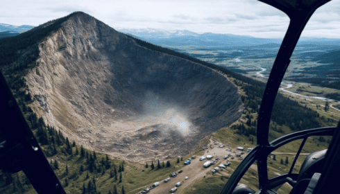 Местные фермеры рассказали, что слышали звук, похожий на «глубокий раскат грома под землей», непосредственно перед тем, как вершина горы, казалось, провалилась вниз, оставив после себя чашеобразную пустоту шириной почти в милю.