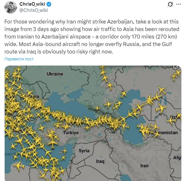 Удар Ирана по Азербайджану имел целью сорвать авиасообщение между Европой и Азией – OSINT-аналитик