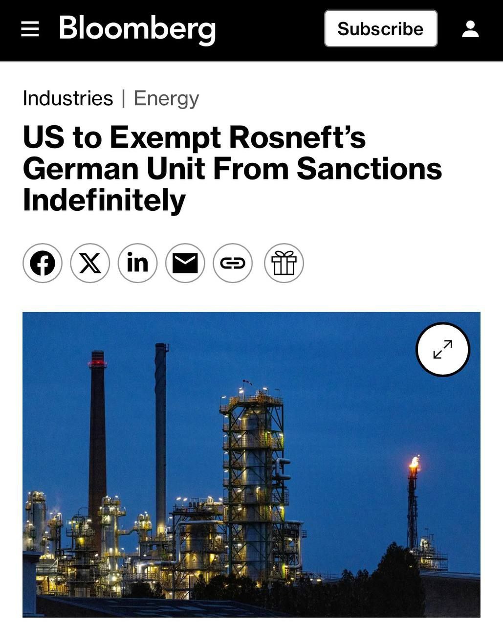 США в пятницу бессрочно выведут немецкое подразделение «Роснефти» из-под санкций, — Bloomberg. Соответствующее решение 6 марта намерено озвучить министерство финансов США.