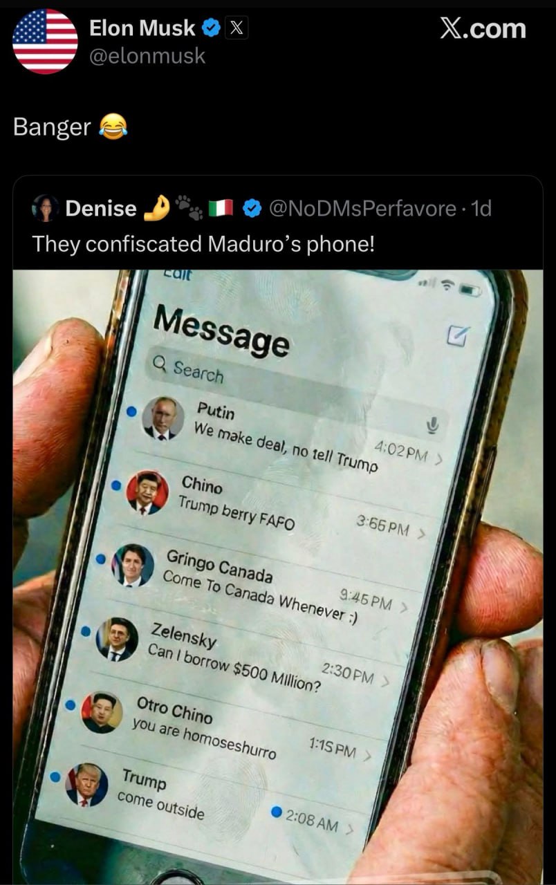 Наконец, в Венесуэле продолжают пока незримо присутствовать такие игроки как Китай, например. Возможно, что товарищ Си решил вложиться в небольшую партизанскую во*ну, которая затруднит и отсрочит починку старых нефтяных скважин и введение новых в эксплуатацию. Китайцы уже широко разинули рот на эти месторождения, так что им, наверное, сейчас очень абидна.