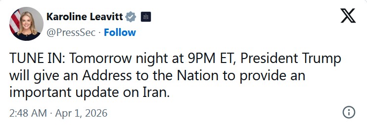 Что это будет за обращение и будет ли оно что-то значить – пока непонятно и тема обсуждается. Оптимисты вангуют, что Трамп объявит конец операции, что цели достигнуты и все такое. А пессимисты ожидают начала сухопутной операции, которая по многим прогнозам скорее всего не будет удачной.