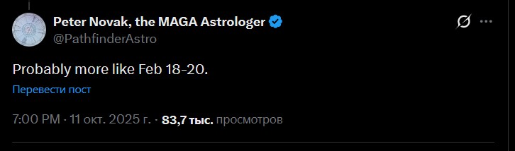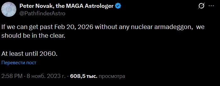@PathfinderAstro: Если мы переживем 20 февраля 2026 года без ядерного оружия, то все должно быть в порядке.