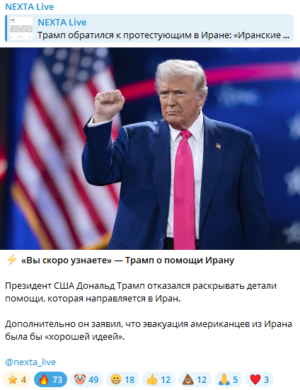 Поэтому сейчас у Дональда Фредовича как-то, так сказать, ответить за базар, остается не сильно много времени. Сначала протесты в Иране пойдут на спад и в 33 раз закончатся ничем, а потом над Трампом все будут смеяться.