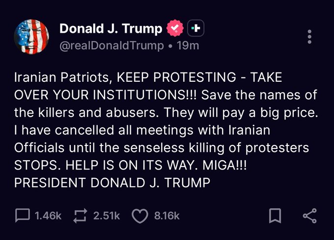 С большой долей вероятности, именно так и будет. Жаль простых людей в Иране, которые поверили словам рыжего пиздабола – режим устроит настоящий террор против всех несогласных после окончания массовых протестов. Людей просто используют для достижения политических целей, – которые, кстати, до сих пор не достигнуты, – а потом сольют в унитаз.