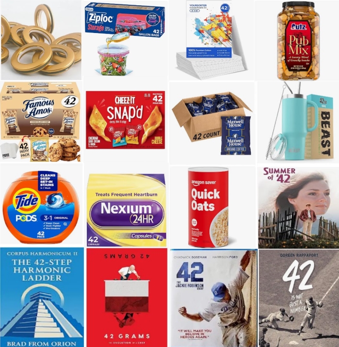 По какой-то загадочной, волшебной и непонятной причине, если взять в руки любое г-но, которое продают в любом современном магазине, то там обязательно будет 42: 42 унции, 7 рядов по 6 штук, 42 цента, 42% чего-то там и так далее.
