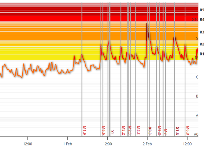 Эта солнечная вспышка класса X8 достигла пика 1 февраля в 23:57 UTC.