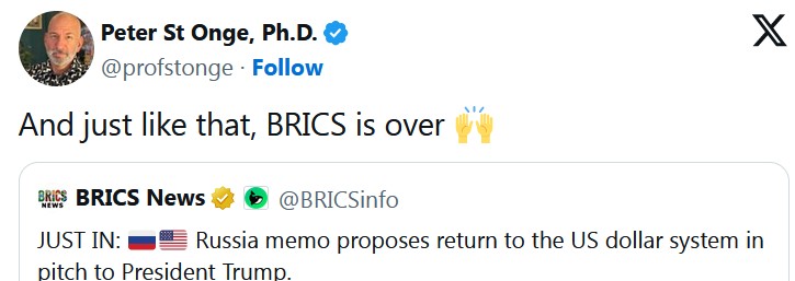 Пока официального выхода мокшанских болот из БРИКС не было, пока речь идет только о возвращению к доллару.
