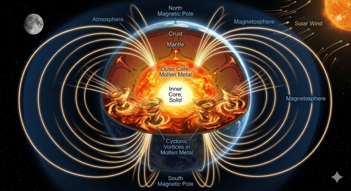 Кроме того, AI нарисовал, конечно, чудную картинку вихрей металла в ядре и в мантии, однако объективно этих вихрей в глаза никто не видел. Это геологическая теория и не более того.