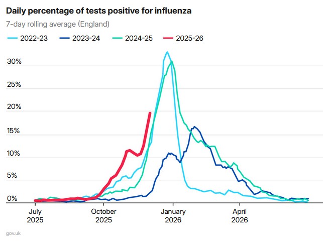 Плюс “сезон гриппа” какой-то запоздалый, поскольку традиционно народ начинает умываться соплями уже в октябре/ноябре, в декабре самый пик. Это происходит потому, что как только холодает – а это как раз конец осени – народ больше тусуется в помещении и воздерживается от его проветривания. Отсюда и вспышки гриппов.