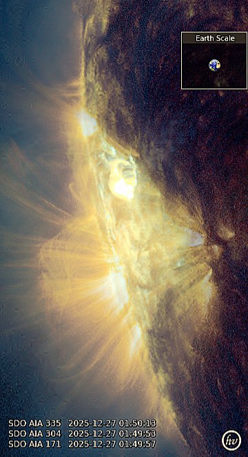 Не далее как 27 декабря пятно выдало серию вспышек с максимальной порядка M5, однако M5 – это вспышка, направленная под углом 100+ градусов к Земле и до спутников долетел лишь легкий ветерок. И сейчас понятное дело, как и всегда интрига: долбанет или не долбанет? А если долбанет, то когда и насколько сильно?