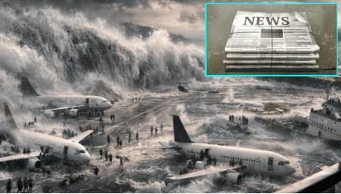Выглянув наружу, я с ужасом увидел множество самолетов на взлетно-посадочной полосе, которые были затоплены цунами. Люди пытались выбраться из самолетов и кричали о помощи. Было ясно, что их застали врасплох.
