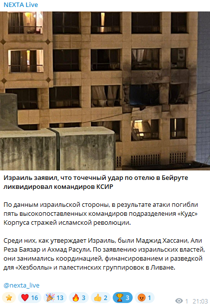 Итог: Сообщение о сбитом самолёте и гибели пилота 7 марта — это попытка перекрыть информационный эффект от гибели 41 человека в Ливане и замаскировать успешный (хоть и безрезультатный по части поиска останков) рейд израильского спецназа.