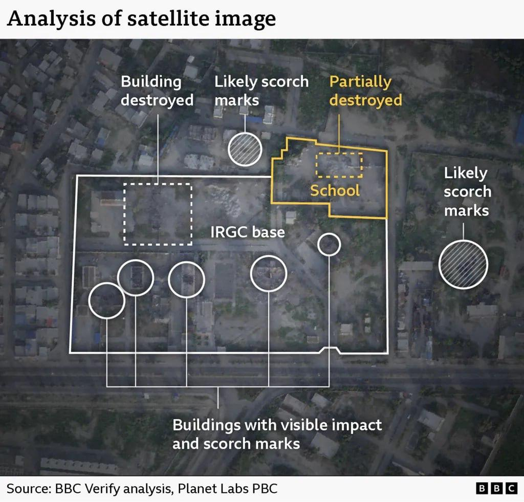 Спутниковые снимки показывают, что школа находилась рядом с военной базой КСИР.
