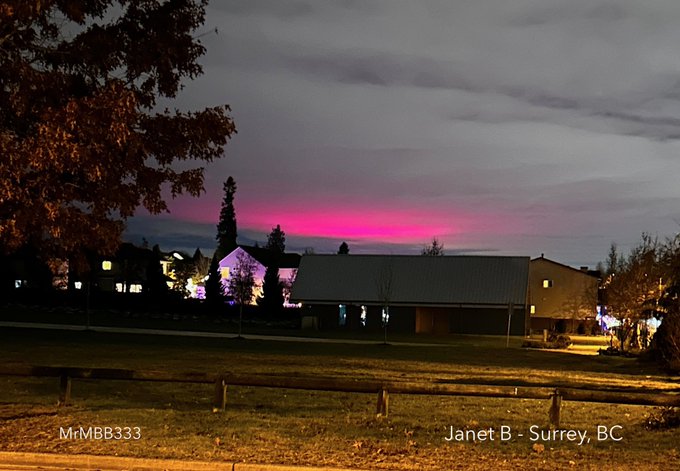 Как сообщает 31 декабря MrMBB333, накануне подписчица из Канады прислала ему чудные фото очередного странного “атмосферного явления” – полосы загадочного лилового света, появившегося посреди ночи над горизонтом: