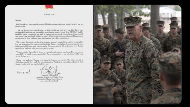 Корпус морской пехоты США только что дал указание своим резервистам (врачам, юристам, учителям, бухгалтерам, прошедшим подготовку по выходным) проверить свою готовность к возможной крупномасштабной мобилизации, связанной с Ираном. «Готовность будет предполагаться, а не подвергаться сомнению».