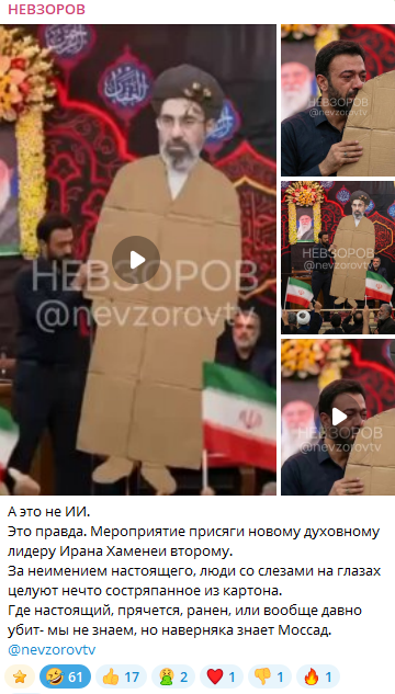 Проамериканские парни говорят, что Иран всё, что через пару дней там наступит каменный век, но возлюбившие шиитов скрепцы топят за Иран и рассказывают у себя на площадках, насколько там великая моща. И как ни странно , складывается известная из фольклора ситуация, когда правы оба.