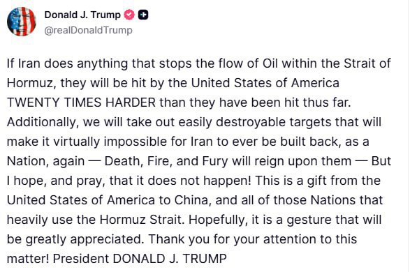 Так уже же ведь, Трамп 09.03 намекнул, когда все начнется: “Если Иран предпримет что-либо, что остановит поток нефти через Ормузский пролив, они получат удар от Соединённых Штатов Америки в ДВАДЦАТЬ РАЗ СИЛЬНЕЕ, чем все предыдущие.” В итоге имеем оповещение от 9 марта с угрозой на 20 марта – Весеннее Равноденствие, за 11 дней код = 911! Также это будет 21-й день Иранской СВО!