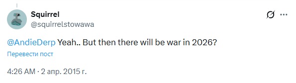 На дворе 2026 год. Земля была уничтожена ядерной войной https://x.com/jdr989/status/623541567639416832
