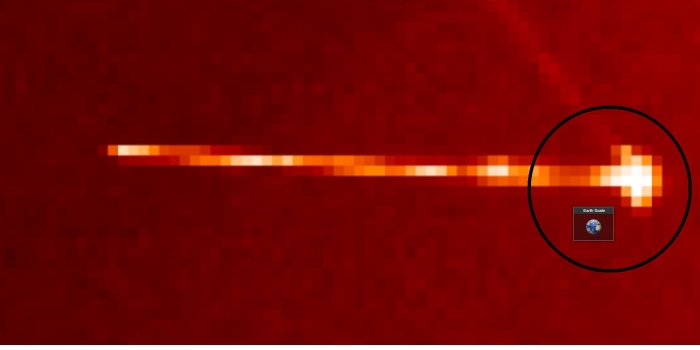 Это скрины за, приблизительно, десять дней наблюдений. И в предыдущие 10 дней там та же картина: в одном и том же секторе, то есть приблизительно на 8 часов SOHO Lasco C2 регулярно показывает какой-то “артефакт” , похожий на огромный цилиндрический объект, Земля на его фоне выглядела бы крошечной: