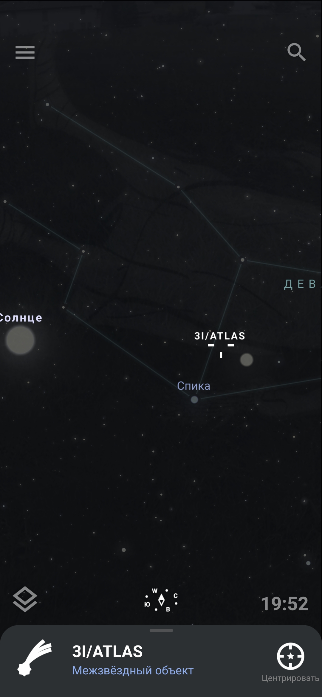 Ясно-понятно. Получается, Ави Лоэб противоречит астрономическим приложениям, а приложения противоречат Ави Лоэбу. Но, собственно, благодаря этим прогам я узнала, что 21.10 к Солнцу приблизился именно 3I/ATLAS, и на том, как говорится, спасибо.