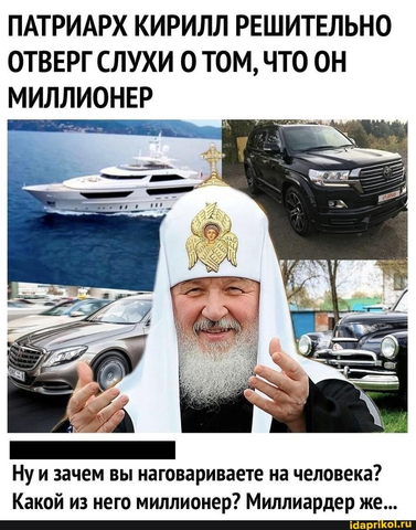 Сказал Гундяев, одетый в золото и разъезжая на Майбахе (освящён специальной водой, поэтому все норм).