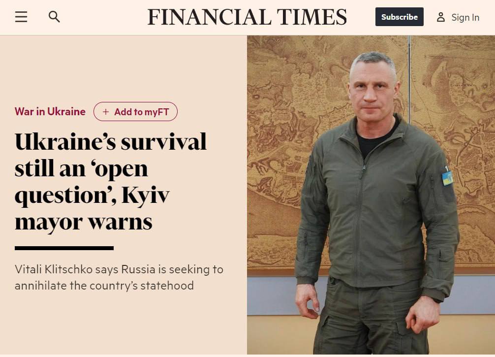 Киев из-за атак РФ находится на грани катастрофы, – Кличко. Мэр украинской столицы заявил, что непрерывные российские авиаудары по критической инфраструктуре в течение последних двух месяцев «подвели Киев к грани катастрофы». «Сейчас вопрос будущего нашей страны – выживем ли мы как независимая страна или нет – все еще открыт»,